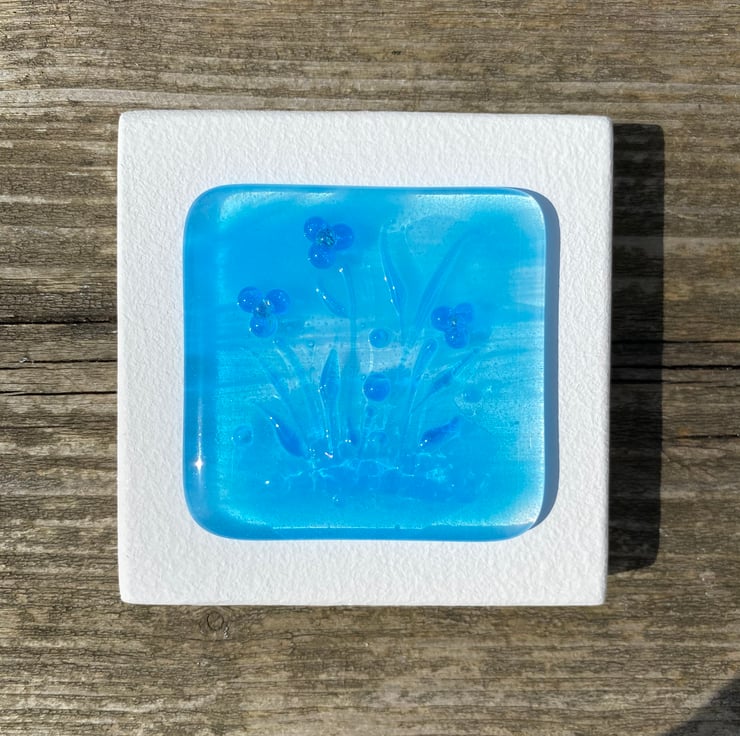 This delicate piece in shades of turquoise is from my 'Meadow range' and is displayed on painted wood.