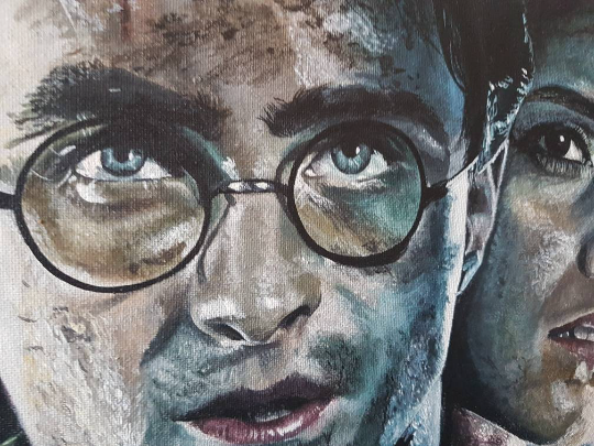 An original Harry Potter acrylic painting titled 'Best Friends'.