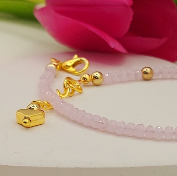 Introducing our gorgeous Rose Quartz Anklet with a delicate gold clasp!