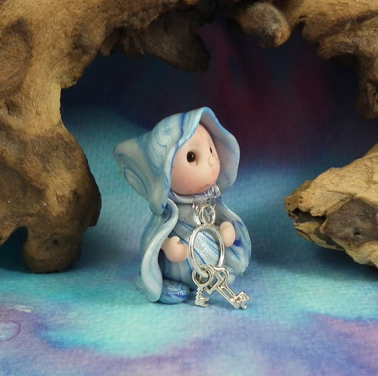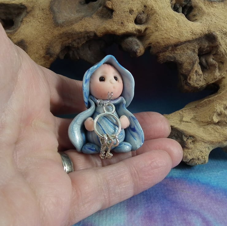 This is a 'one of a kind' creation having been entirely handmade without the use of moulds here at my studio on the Sussex Coast. Modelled with artist blend polymers, blushed before sealing with lacquer, Marge has sparkling black onyx eyes and variegated robes. Marge the Keykeeper Gnome is just one and a half inches tall.