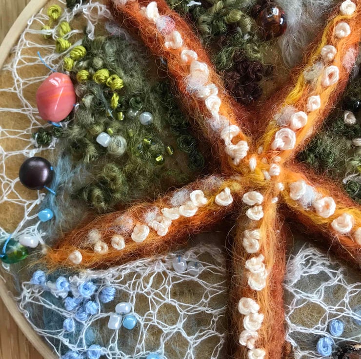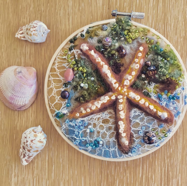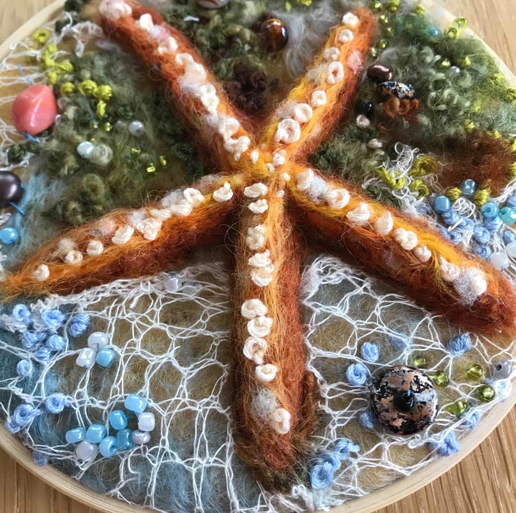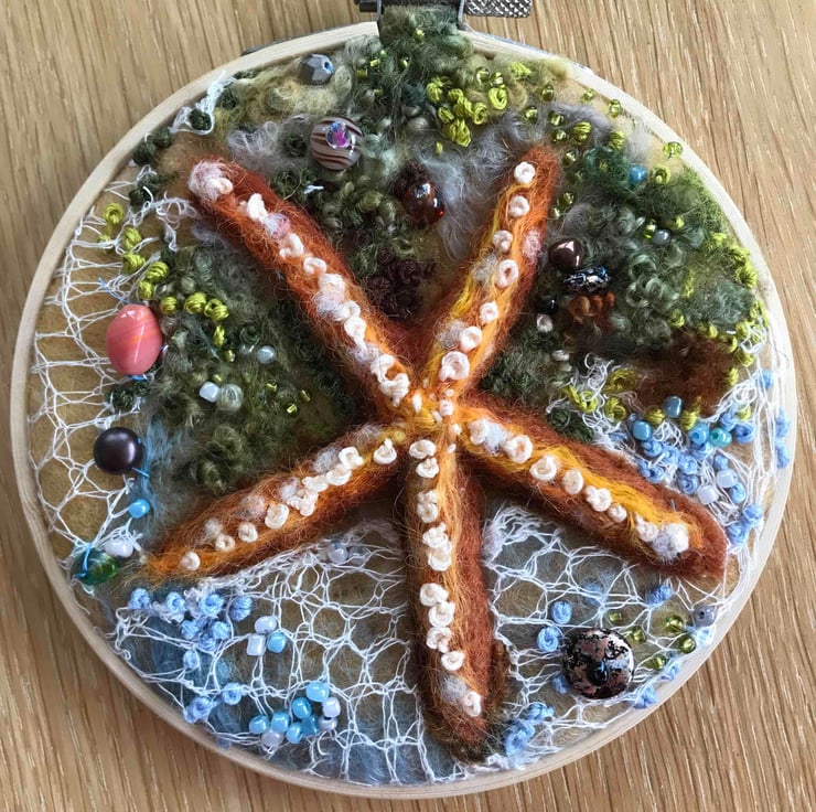 The starfish is wool felted with hand embroidered french knots on the arms.