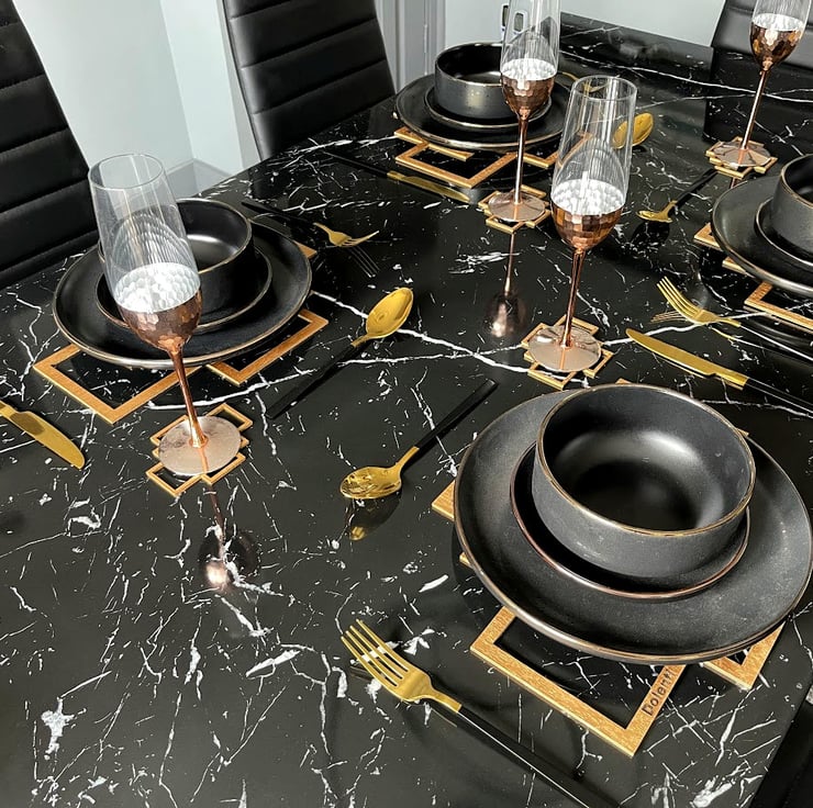 The intricate design of these placemats and coasters features a modern geometric pattern that exudes class and sophistication. When paired with black crockery, the contrast creates a stunning visual effect that will make your table setting look like it's straight out of a high-end restaurant or hotel.