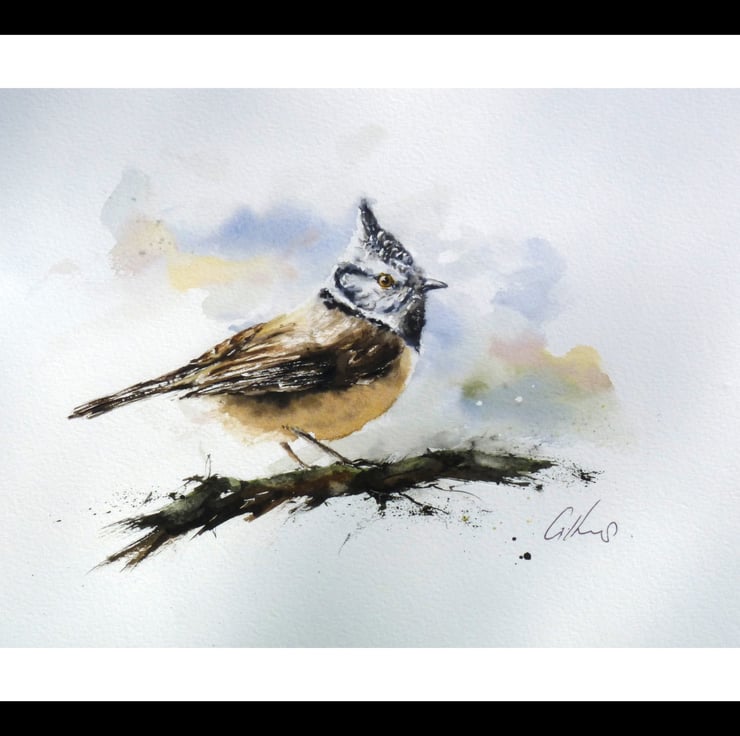 Crested Tit, high quality Giclée Print of my original watercolour painting. A4 size, 21x29cm with an additional 1cm border.