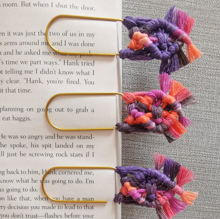 Set of 3 bookmarks on jumbo gold paperclips.