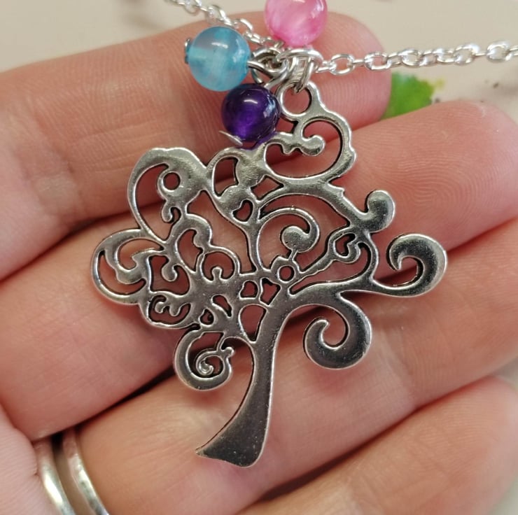 Tree of life Alloy Pendant on Silver plated chain measures 16 with up to 17.5 inches using extender, plus the length of the pendant.