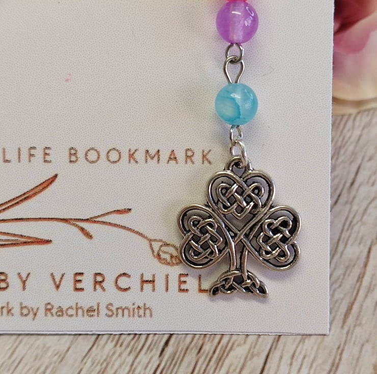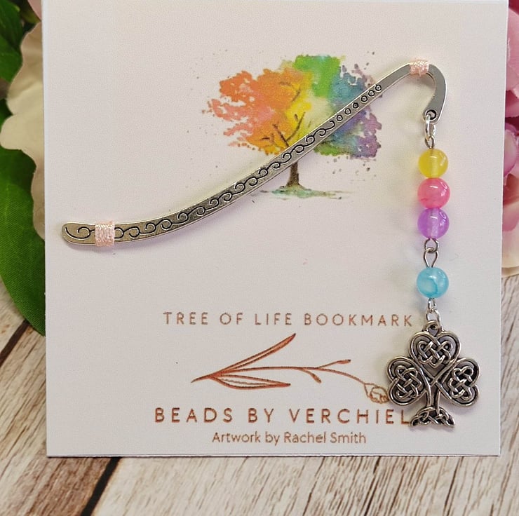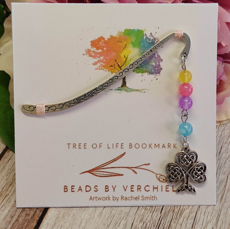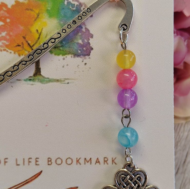 Ideal letterbox gift. Bookmark with 6mm jade beads and tree of life charm.
