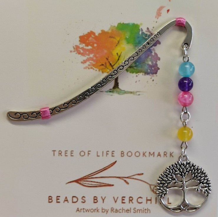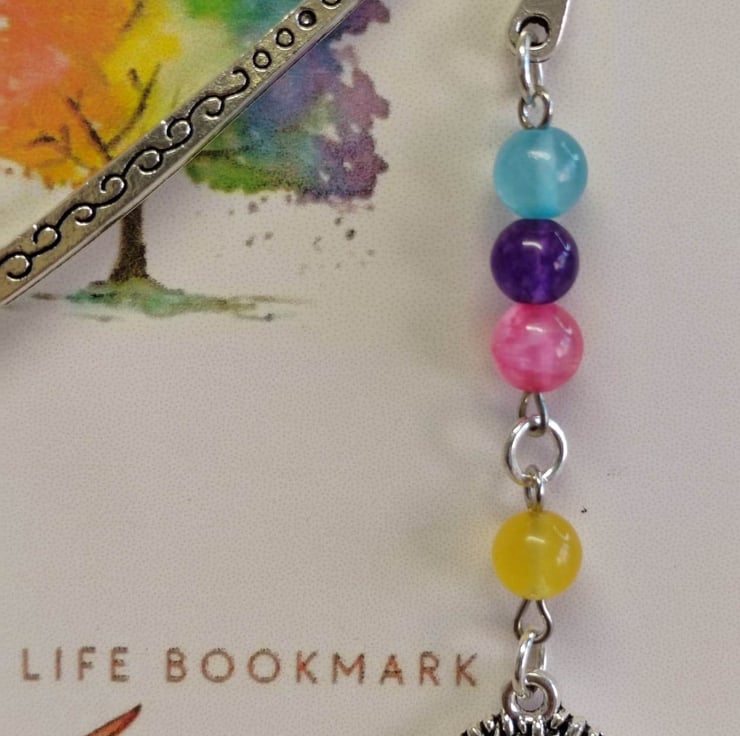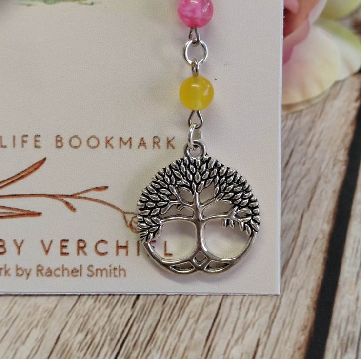 Ideal letterbox gift. Bookmark with 6mm jade beads and tree of life charm.