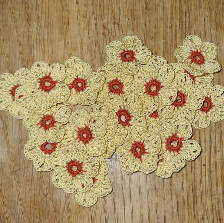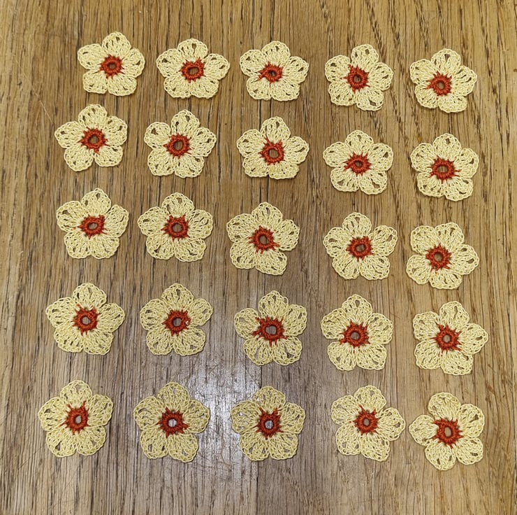 25 Small flowers - each has a dark orange centre and 5 yellow petails