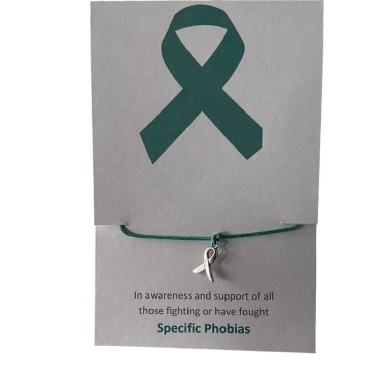 Specific phobias awareness teal ribbon charm corded wish bracelet gift