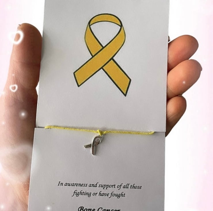 Bone cancer awareness wish bracelet yellow ribbon charm corded wish bracelet