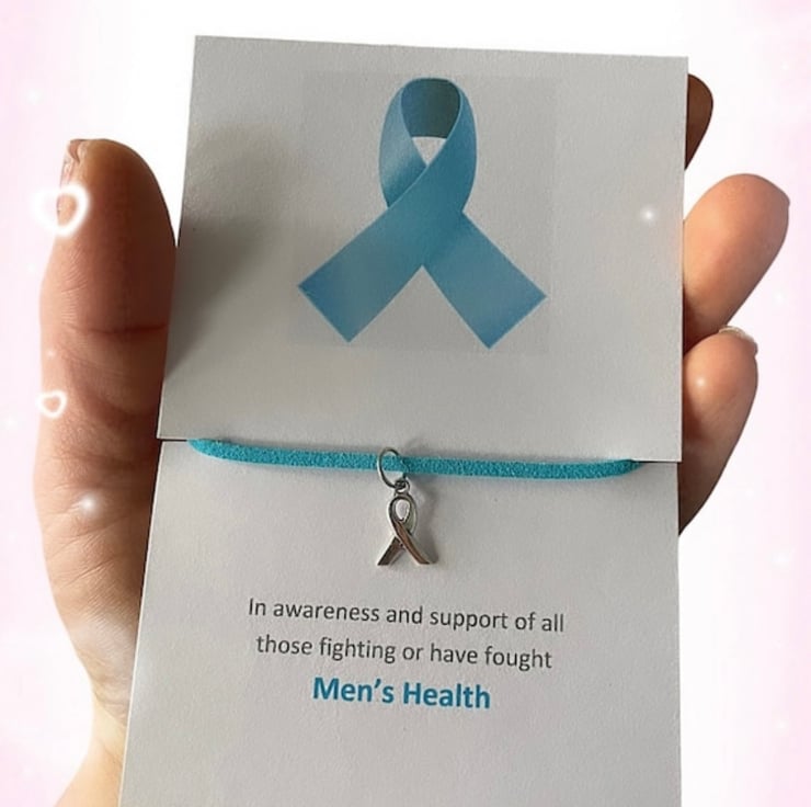 Mens health awareness corded ribbon charm wish bracelet gift