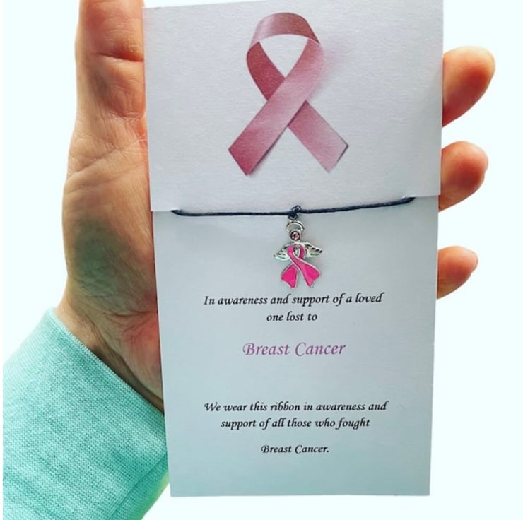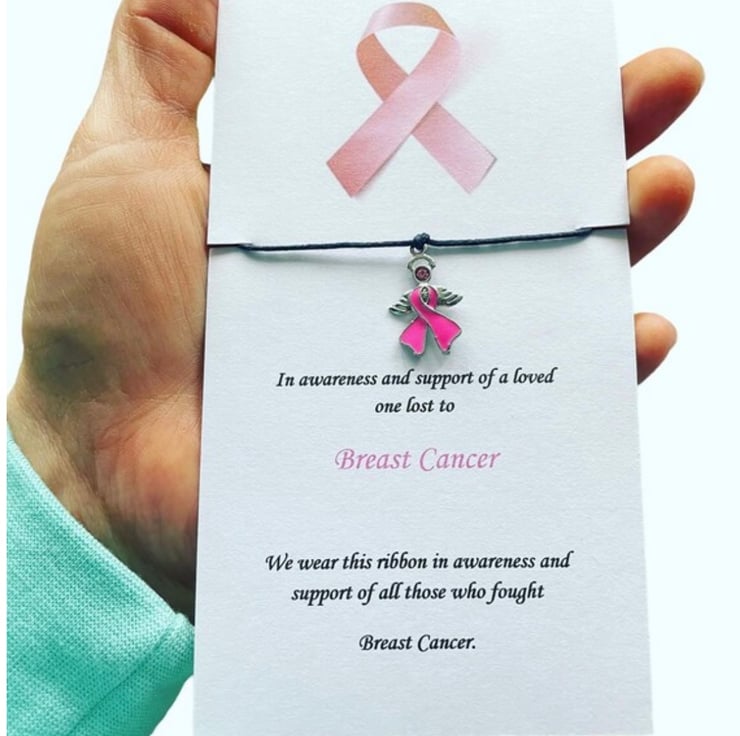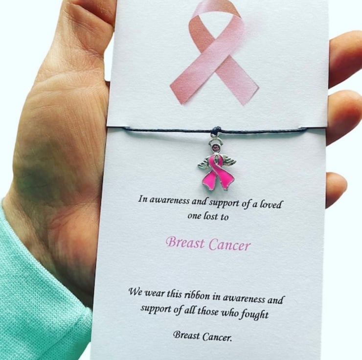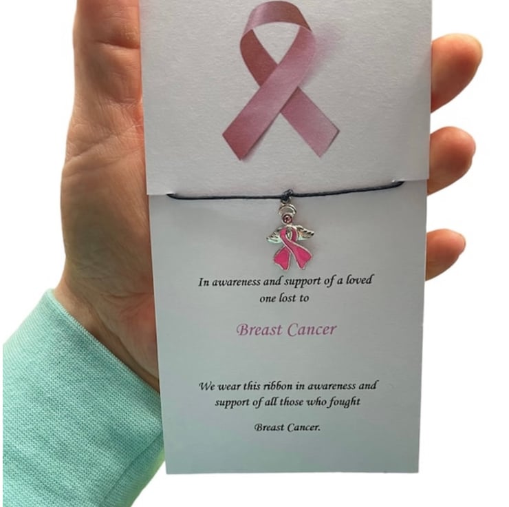 Breast cancer in memory of loved ones lost wish bracelet angle charm corded