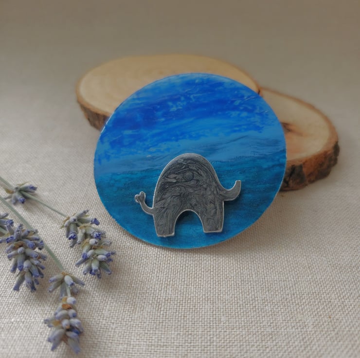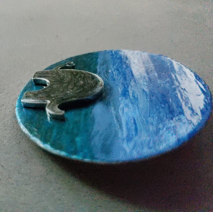 Because of the different mediums used the finish to the face of the brooch is uneven but I think this makes it more interesting. The back has been polished and sealed. Each one is totally unique.