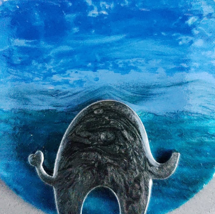 This blank has been coloured in shades of blue and green and I've added a recycled elephant blank which has been coloured with acrylic paint. A lovely gift for an elephant lover.