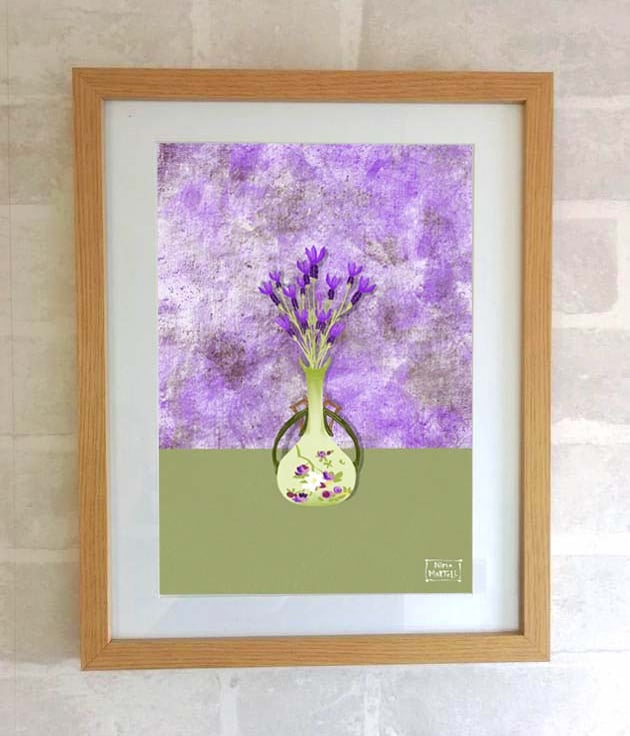 A beautiful vintage vase with lavender. This is an A4 Print of my original illustration.