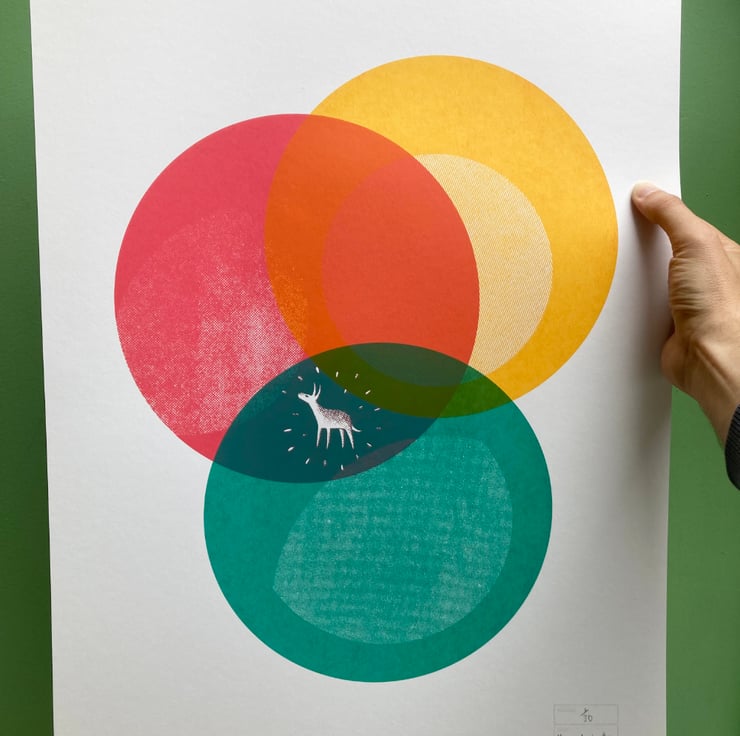 Printed by myself in my studio in Sheffield, UK. Each one is slightly different, as is the nature with screen-prints.