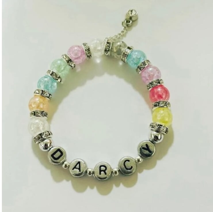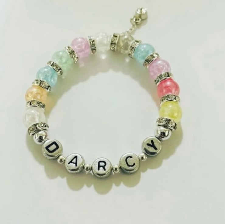 Multicoloured rhinestone spacer beaded personalised bracelet toddler adult kids