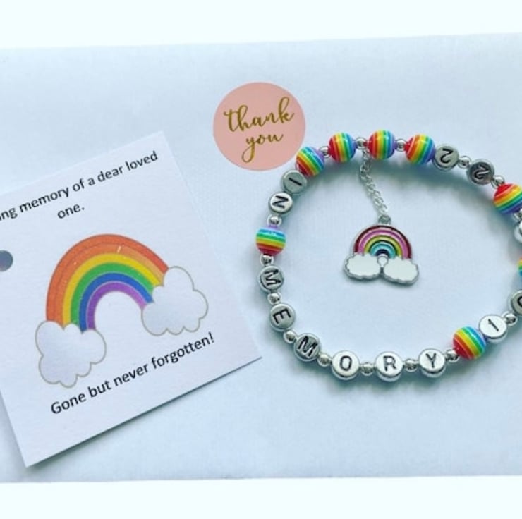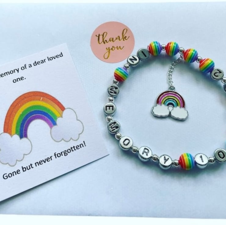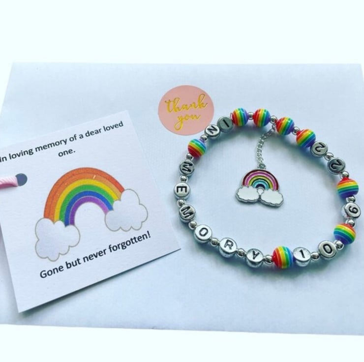 In memory of stretch beaded rainbow charm rainbow bead bracelet