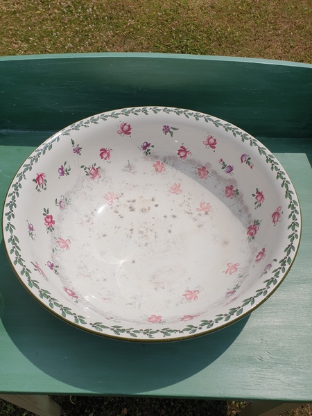 This is a lovely Edwardian washstand which includes the basin, soap dish and shaving dish. The pottery is all from Stoke on Trent and is marked Grimwades Winton.
