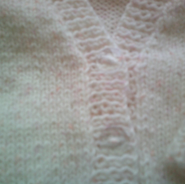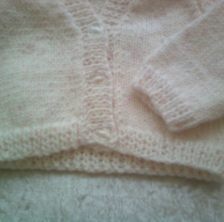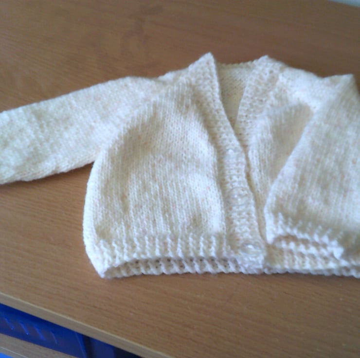 Hand knitted using acrylic yarn this V neck cardigan is ideal for a new baby - especially if you want to get a gift for a new baby.