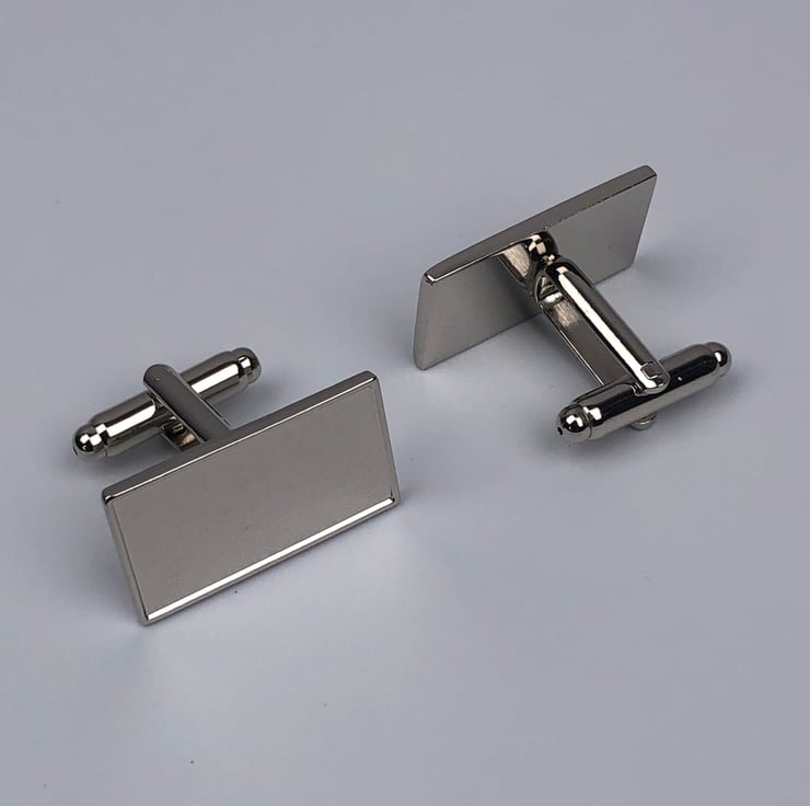 Here we have cufflinks which are rectangular and finished in chrome or gold plating.