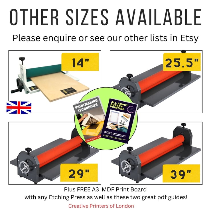 The EZ Etching Press is robustly manufactured using high grade steel. It is compact and also can be stored away on a small shelf. As desk space if often at a premium, you will find that the EZ Etching Press will answer all your problems! Using a machine with rollers also means there are less steps involved and less use of deskworkspace.