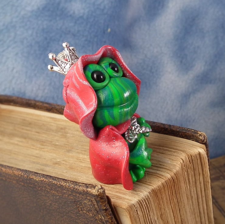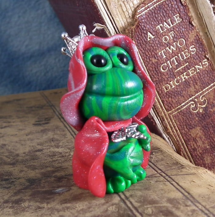This is a 'one of a kind' creation having been entirely handmade without the use of moulds here at my studio on the Sussex Coast. Modelled with artist blend polymers before sealing with lacquer, Beck has sparkling black onyx eyes and a silver crown. Beck the Frog Prince is just one and a half inches tall.