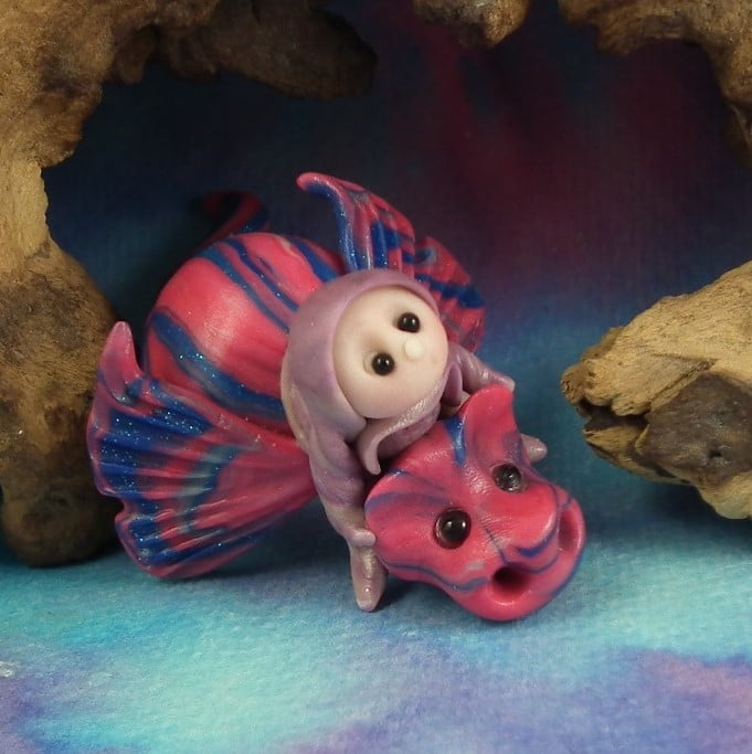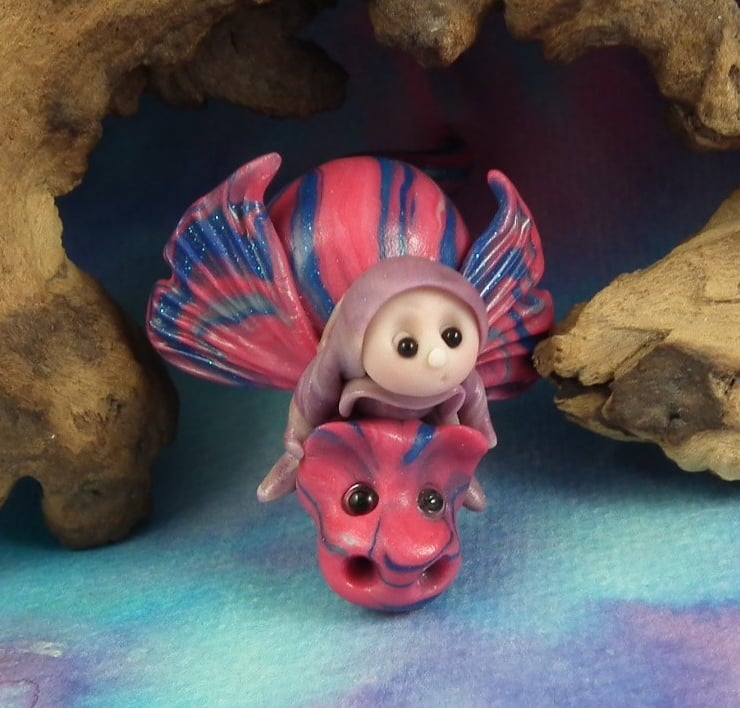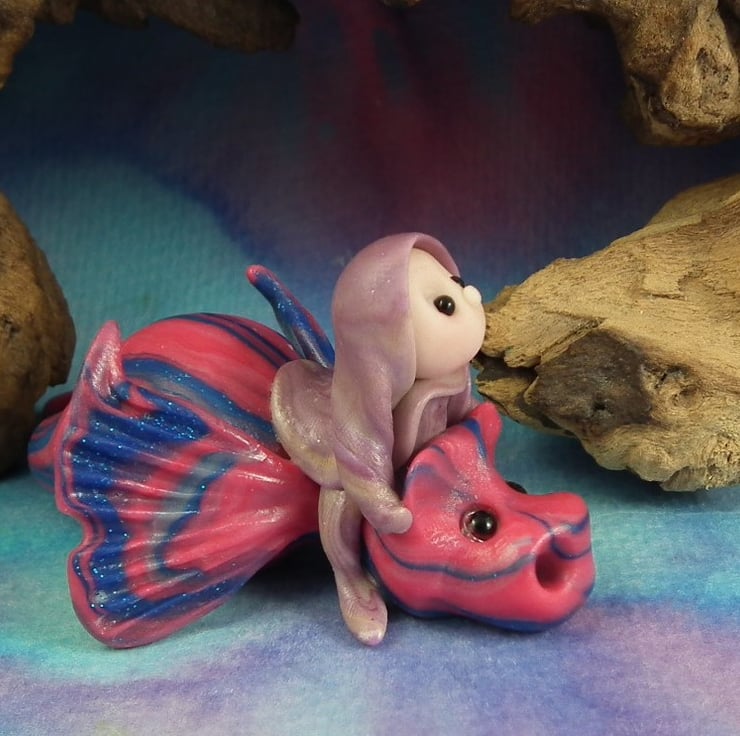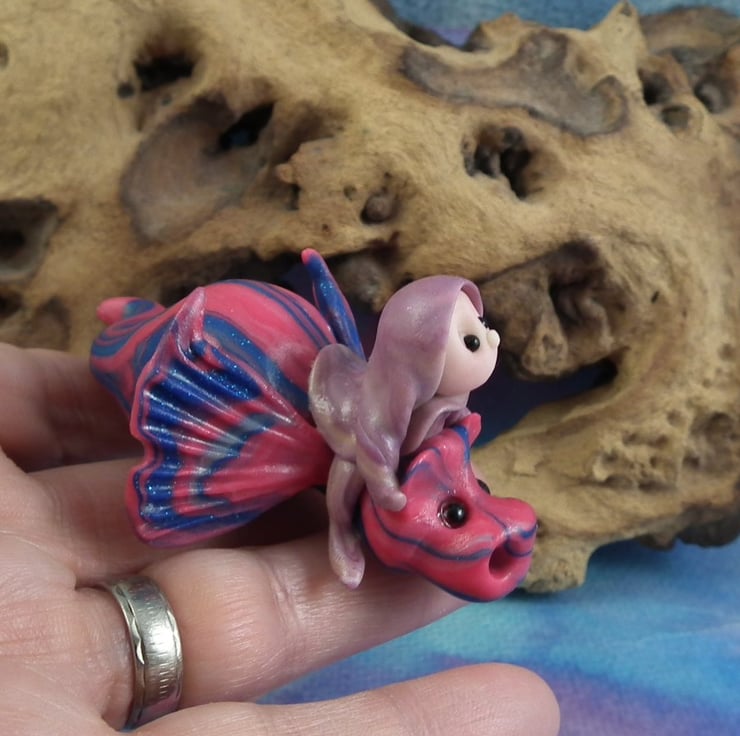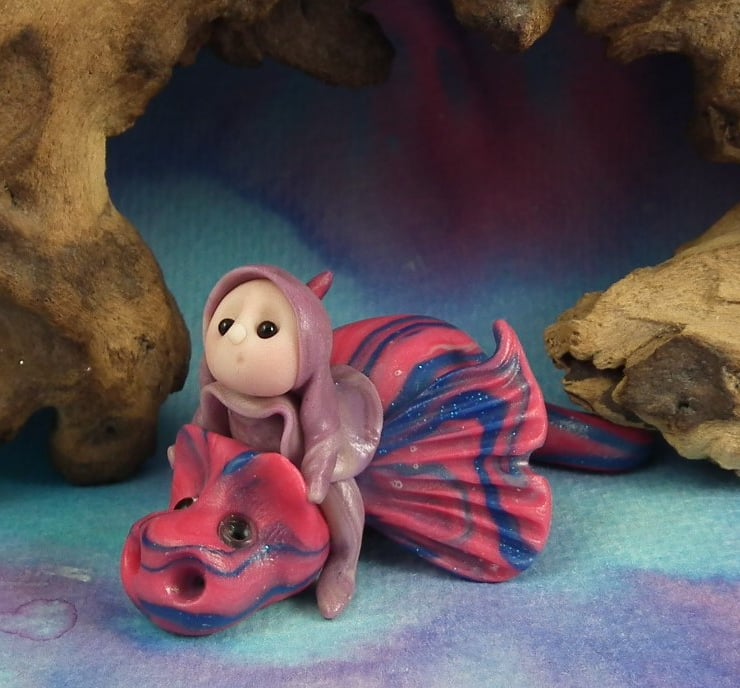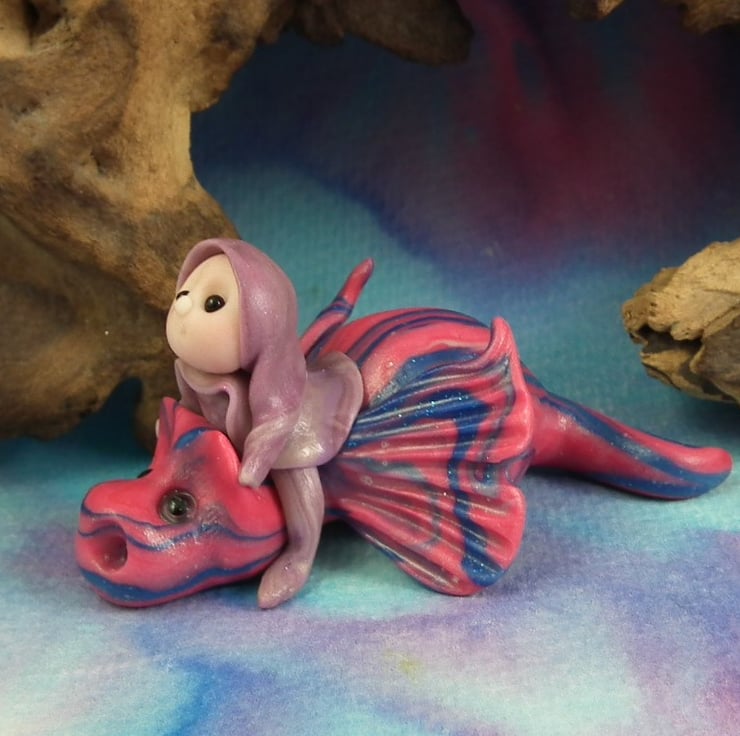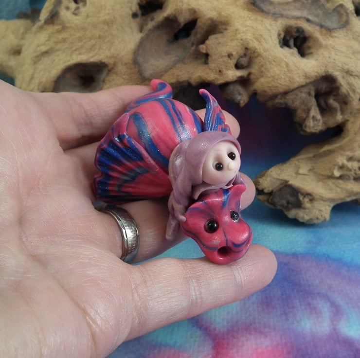 A 'one of a kind' creation having been entirely handmade without the use of moulds here at my studio on the Sussex Coast. Modelled with Prosculpt polymers, painted with heat set paints before sealing with lacquer. The Dragon is just three inches long ...