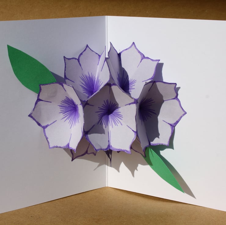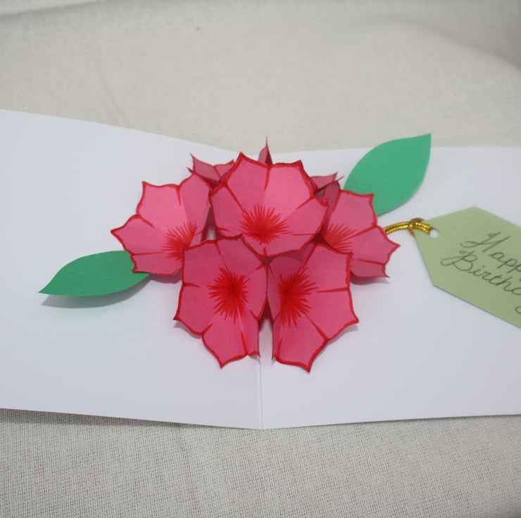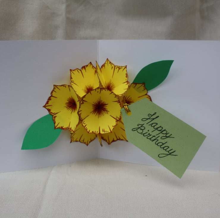 These beautifully simple cards open to reveal a bunch of flowers inside with a gift tag, This can be changed to read any greeting you wish. They are all individually hand coloured, cut and assembled by myself. Therefore each one is different and unique no two will be exactly the same. They can be made to your own requirements and wording or personalised if required please contact me.