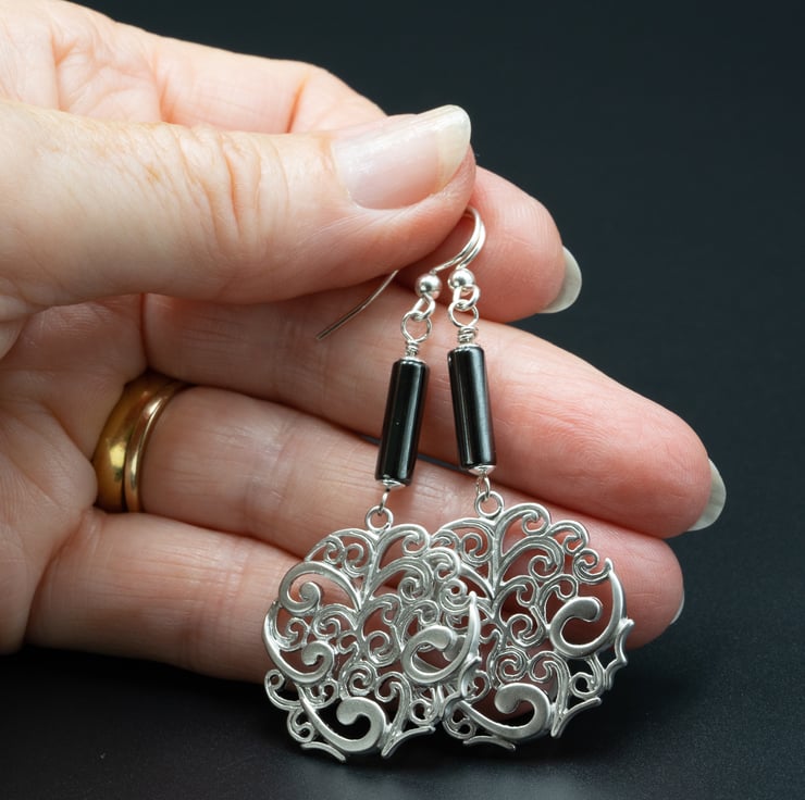 Filigree silver and Hematite earrings -