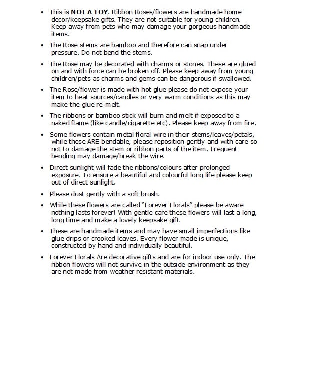 Pic 5 shows care instruction for your Ribbon Flower.