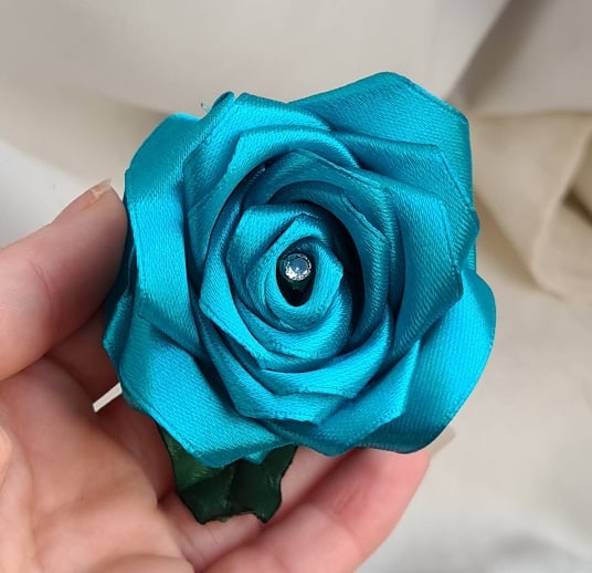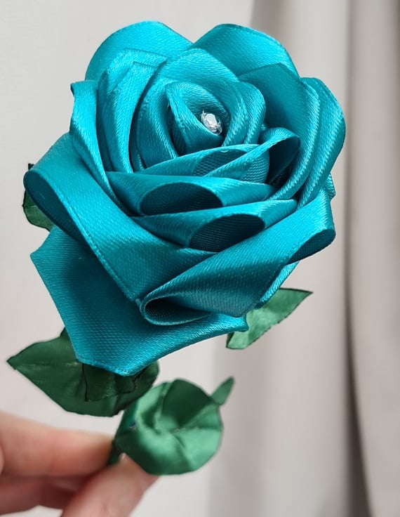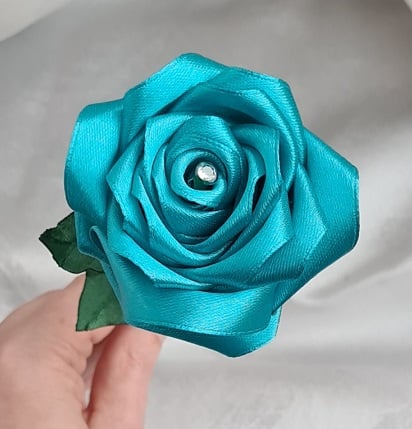 A fabulous handmade gift. One Turquoise Ribbon Rose available only.