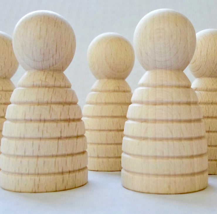 here are 5 Round body lady peg dolls with grooves