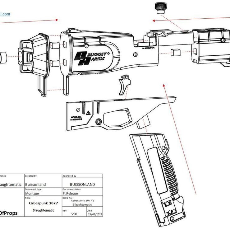 An unofficial 1:1 scale replica of Budget Arms Slaught-O-Matic disposable pistol, from the Cyberpunk 2077 video game, complete with removable magazine.