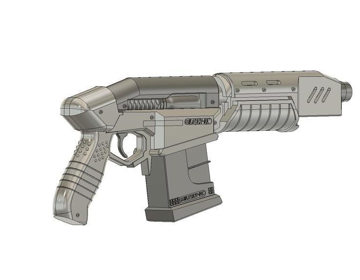 An unofficial 1:1 scale replica of the Militech Crusher shotgun from the video game.
