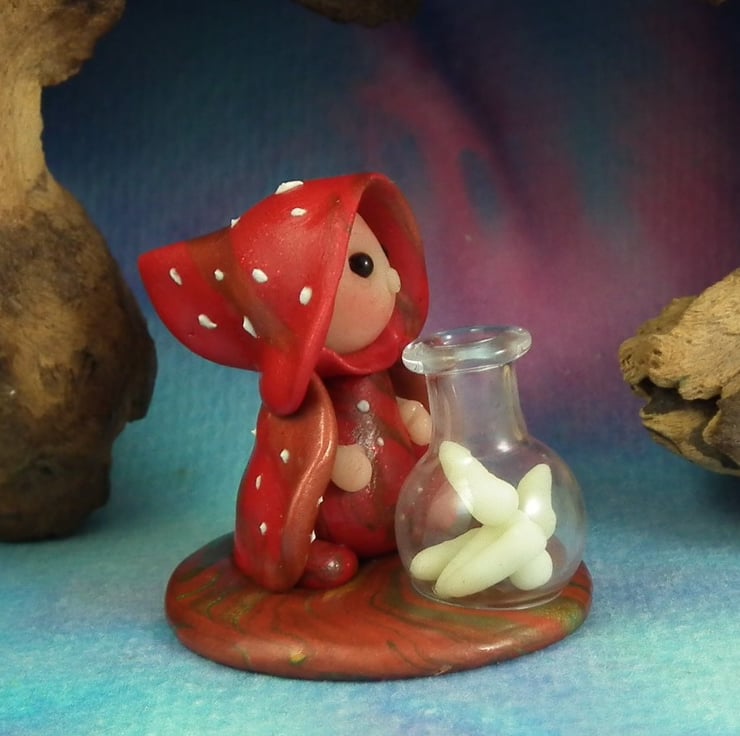 Dilly is a tiny Garden Gnome in her vibrant toadstool robes with a jar of glowing bugs ...