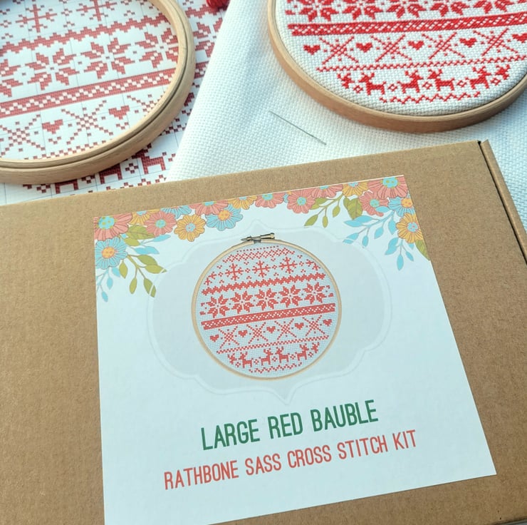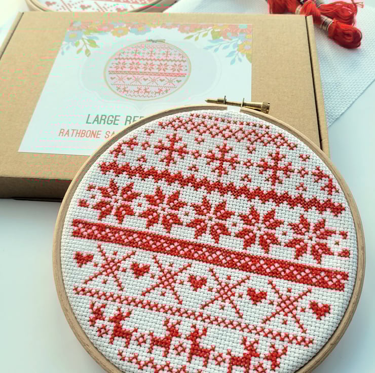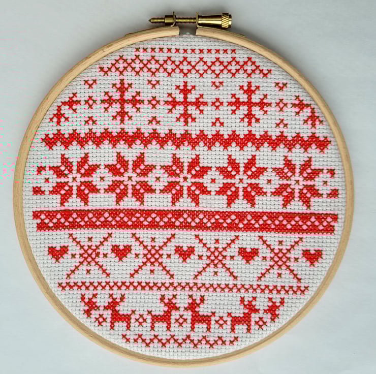 A complete cross stitch kit to sew your own Christmas Fair Isle design - perfect for yourself or as a gift.