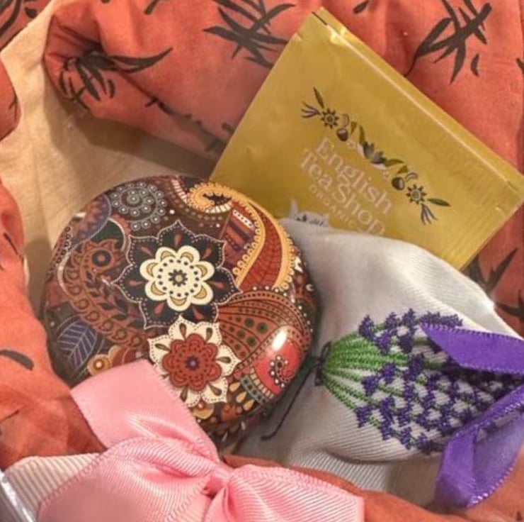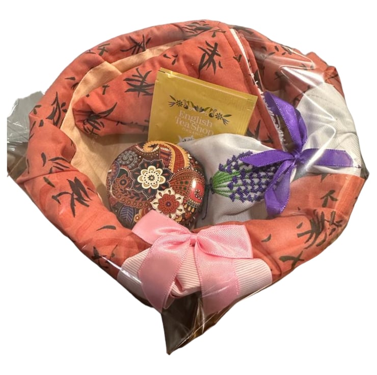 All presented in an adorable wicker basket for you to use for all your little trinkets finished with peach ribbon and bow.