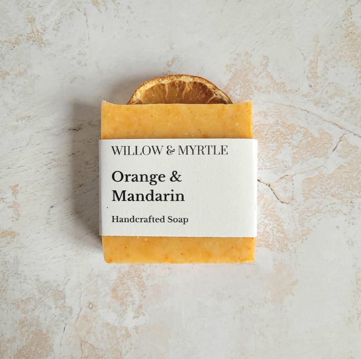 Natural handmade soap bar fragranced with a refreshingly citrus blend of orange and mandarin essential oils.