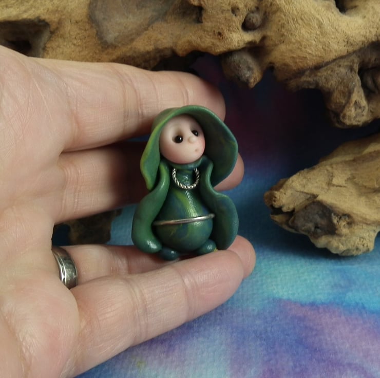 This is a 'one of a kind' creation having been entirely handmade without the use of moulds here at my studio on the Sussex Coast. Modelled with artist blend polymers, blushed before sealing with lacquer, Florry has sparkling black onyx eyes and green garden robes. Florry the Garden Gnome is just one and a half inches tall.