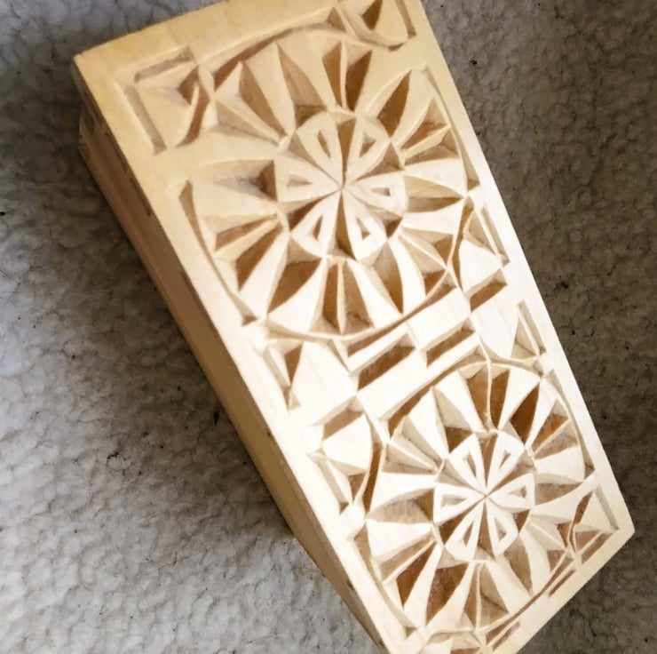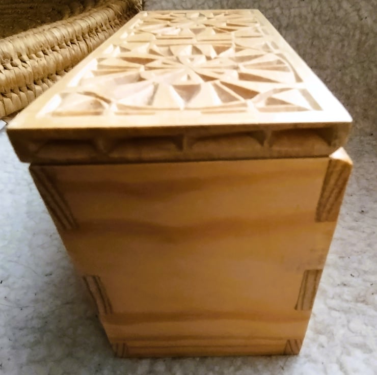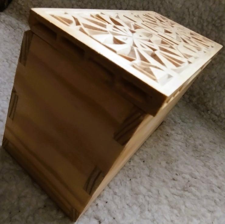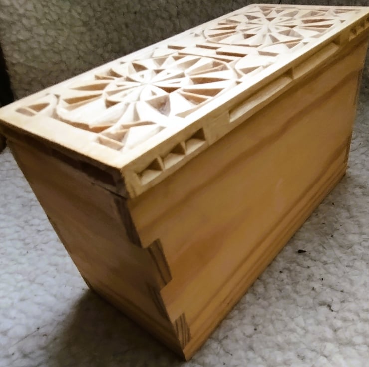 a pine box with a lime lid that I chip carved, the hinges slide into thin slots and work well (but they need gentle handling, as it is easy to damage them). Quite pleased with it, though some more decoration to be added by the new owner might enhance it...