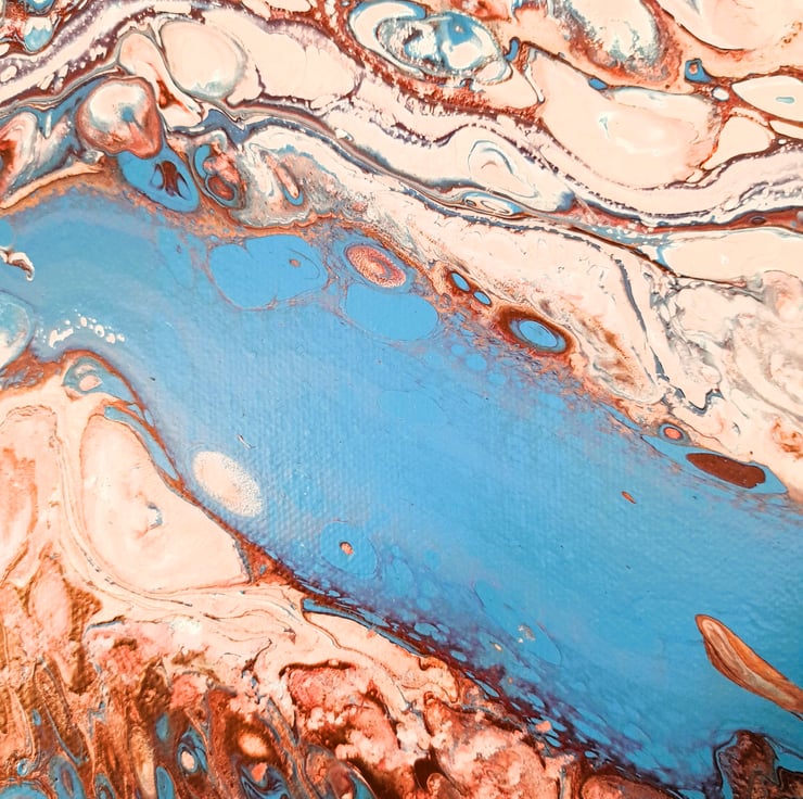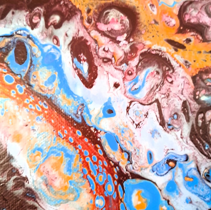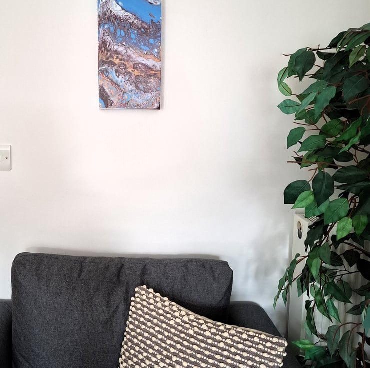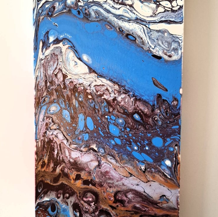 For this one I did a dirty pour (all colours in one cup) which I turned over in the centre of the canvas, then I tilted it gently to remove surplus paint and create a composition I felt happy with.