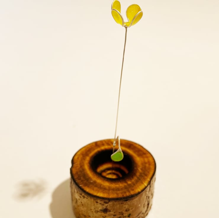 The flower is based on the Lesser Celandine flower that I see when walking in my local woodland, when I see these I know spring is underway. This flower represents future joy in the Victorian language of flowers.