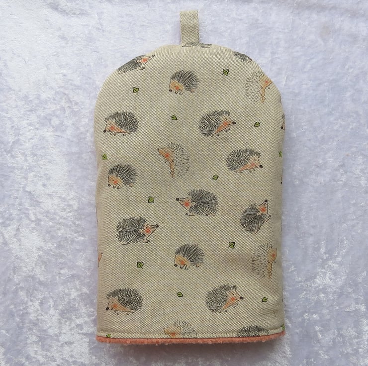 This cafetiere is made from a medium weight cotton, with a hedgehog design.
