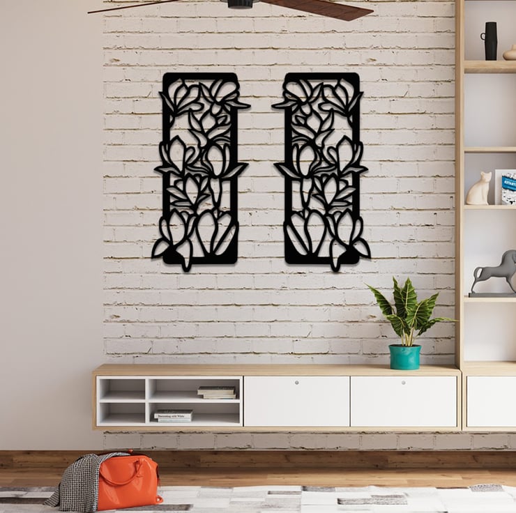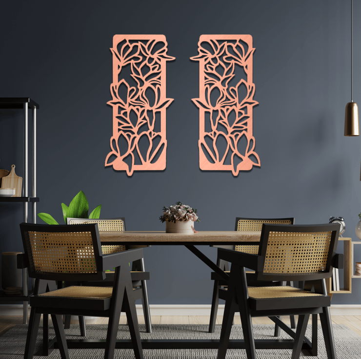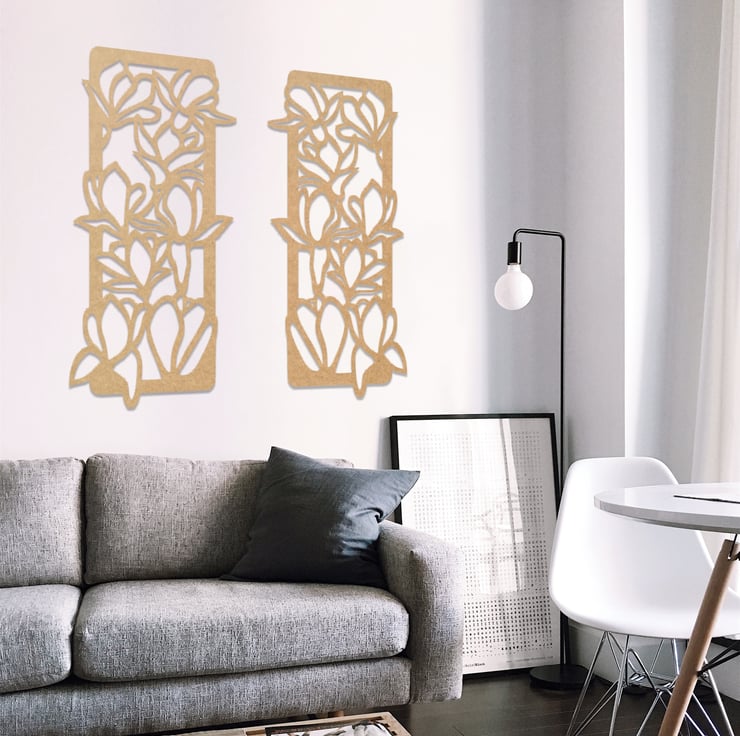 Embrace the beauty of nature with this Laser Cut Wooden Flowers Wall Art, featuring a set of 2 panels. Expertly crafted using laser-cut technology, this nature-inspired decor is perfect for contemporary homes and nature lovers alike. The intricate details of the flowers showcase the elegance and charm of nature's design, instantly elevating any living space. This unique gift idea celebrates the timeless allure of the natural world while adding a touch of sophistication to your home decor.