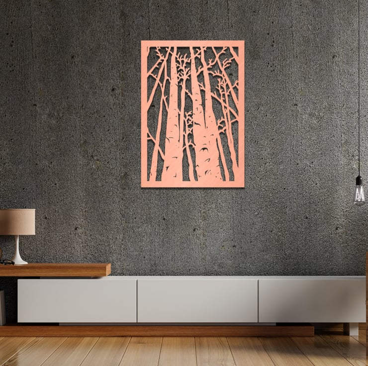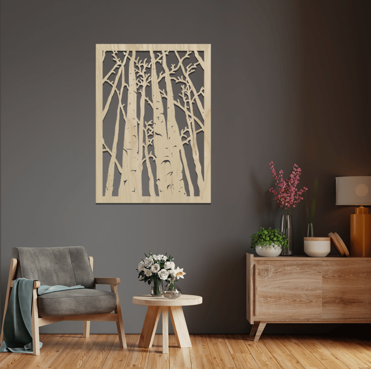 A walk through a serene forest inspired an artist to capture the essence of nature's beauty in a unique piece of art. They envisioned a design that combined the elegance of the natural world with the warmth of rustic charm. Using laser-cut technology, the artist meticulously crafted the Wooden Trees Wall Art, bringing their vision to life. This exceptional work of art showcases the unique natural wood grain finish, evoking the tranquility of a forest landscape. The piece serves as a reminder of the beauty that surrounds us and the importance of preserving our environment for future generations.