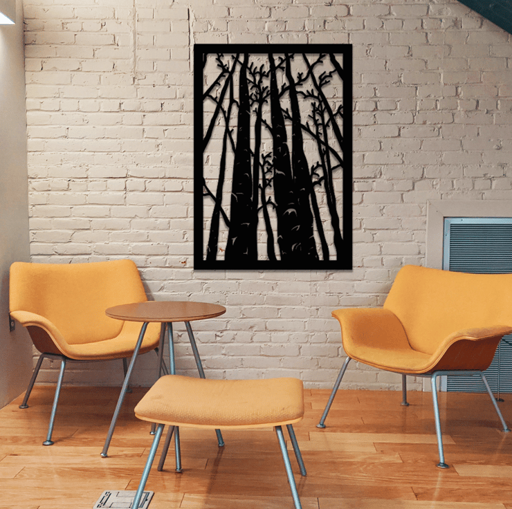 Embrace the beauty of nature with this Laser Cut Wooden Trees Wall Art. Expertly crafted using laser-cut technology, this rustic forest wooden wall art features a unique natural wood grain finish that adds warmth and charm to any space. Perfect for a home or modern office decoration, this intricate piece showcases the timeless allure of the natural world. The handcrafted design effortlessly complements various interior styles, creating a captivating focal point in your room.