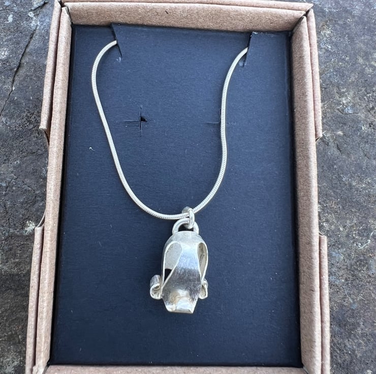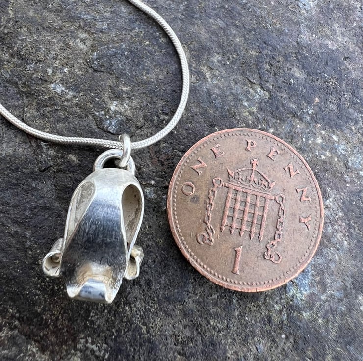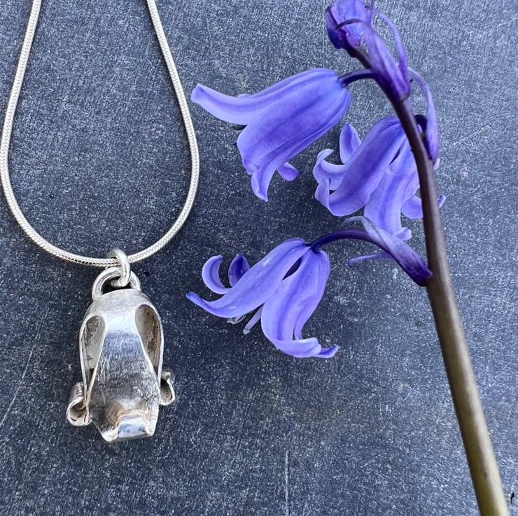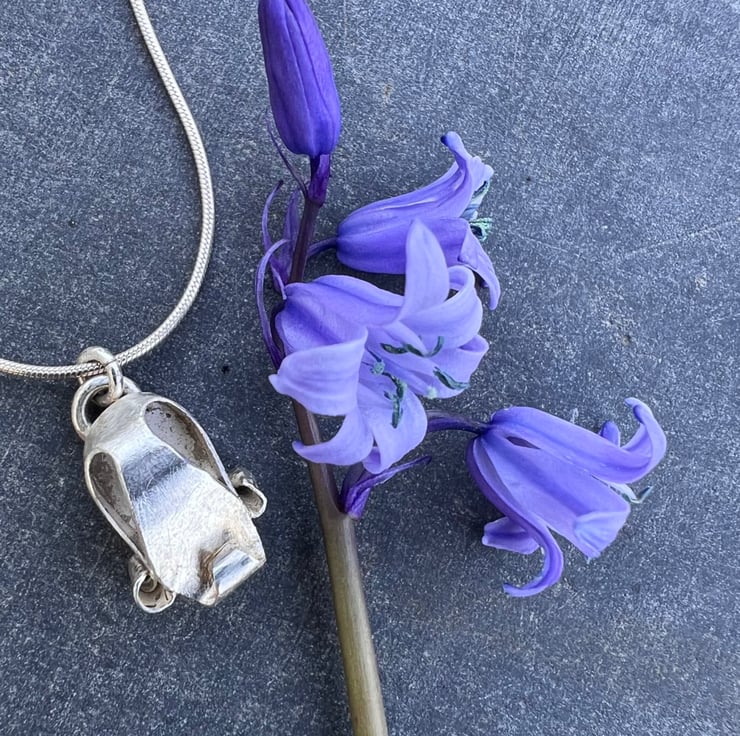 Paying homage to the gorgeous bluebell , I have made a silver bluebell inspired pendant. It is made using sterling silver and designed with a flat piece on the back, so that it sits nicely on the neckline when worn.