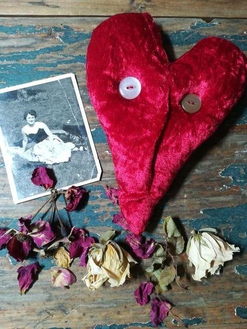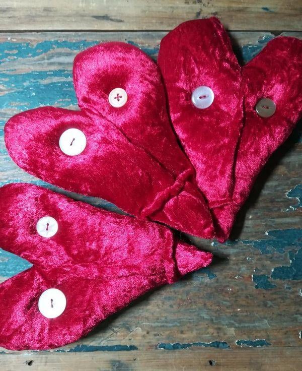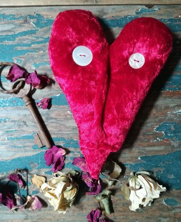A lovely, quirky folk art style red velvet heart wall hanging,