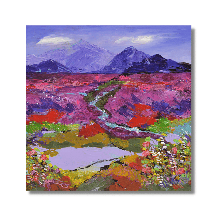 This original painting is called, ‘Where The Mountains Touch The Sky’. It is based on trips to the west coast of Scotland. It would make an ideal gift for any occasion.
